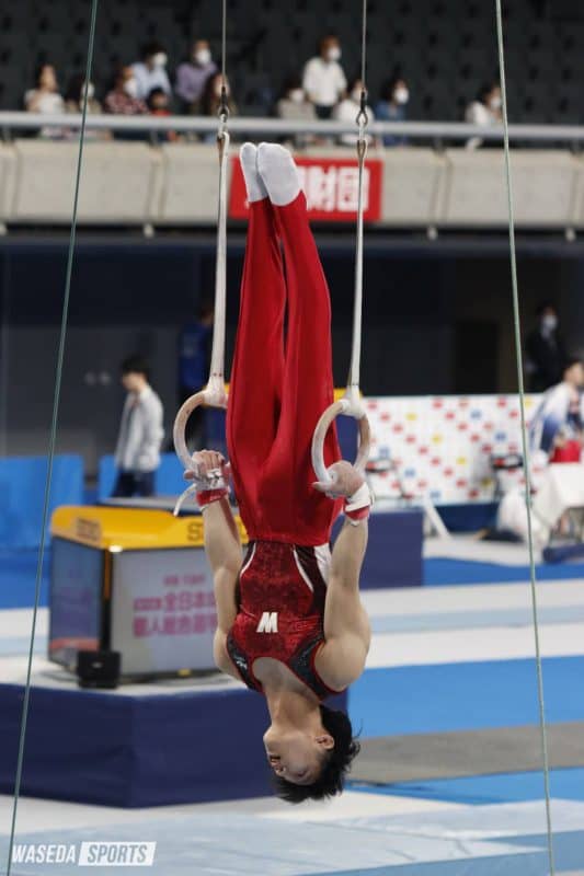 2日目、全日本個人総合選手権(個人総合)の予選に藤尾拓海主将(スポ4=岡山・関西)、武井優介(スポ4=東京・松陰)が出場した。両者共に4日目の決勝に駒を進めることはかなわなかったが、藤尾は全日本種目別選手権(種目別)へと望みをつないだ。また、同日に行われた種目別男子トライアウトには、つり輪に山本泰己(スポ4=愛知・名城大付)、あん馬に向中野蓮(スポ2=千葉・市船橋)が出場。向中野の種目別への参加が予想される結果となった。