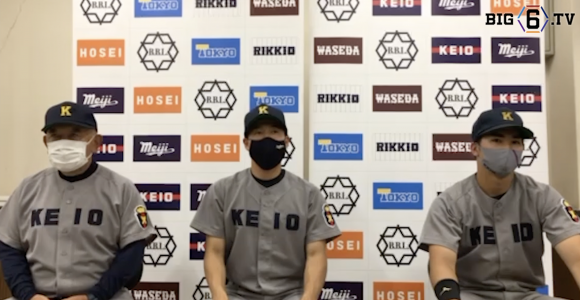 【ヒーローインタビュー】慶應義塾大学 堀井哲也監督・廣瀬隆太(③慶應)・増居翔太(④彦根東) | 東京六大学野球