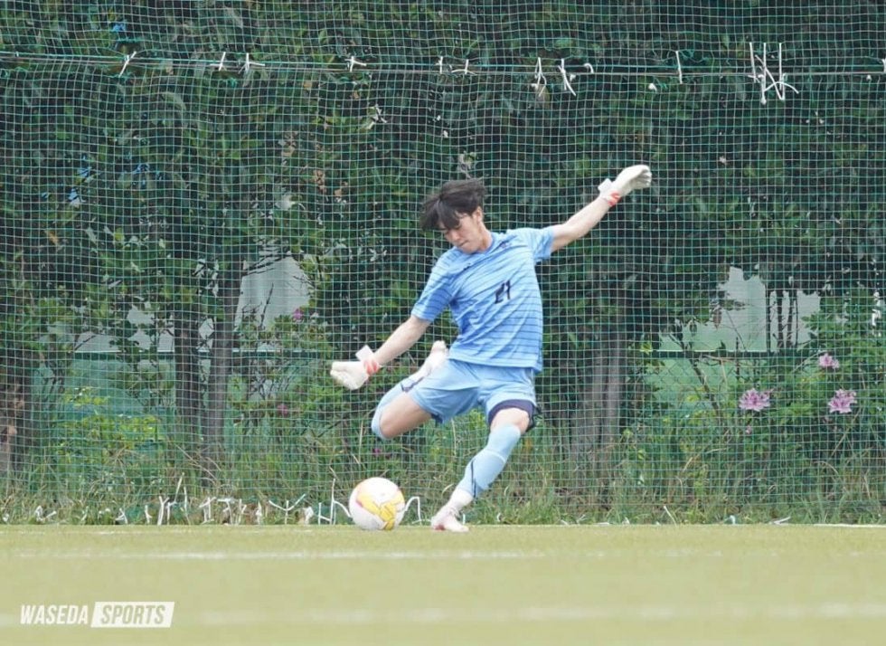 前節から大幅にメンバーを入れ替えて挑んだ前半。序盤はMF植村洋斗(スポ3=神奈川・日大藤沢)、MF山下雄大(スポ4=柏レイソルU18)を中心に早大がボールを保持する。8分、中盤でボールを受けた植村が起点となり、関東リーグ初出場のMF本保奏希(スポ1=JFAアカデミー福島)がシュートを狙うも、ここは相手のブロックに阻まれた。すると13分、自陣ペナルティエリア付近でフリーキックを与えてしまう。相手のシュートは直接枠を捉えたが、GK生方聖己(スポ4=高崎経大付)が好セーブを見せ、ピンチを防ぐ。初勝利に向けなんとか先制点が欲しい早大。27分には、左サイドでフリーになったMF水野雄太(スポ4=熊本・大津)がボールを受け相手ペナルティエリア内に侵入するも、ラストパスを合わせることができない。その後はチャンスを作り出すことができず、自陣に押し込まれる時間が続くが、西田、DF平瀬大(スポ4=サガン鳥栖U18)を中心に粘り強い守備を見せ、0-0で前半を終えた。