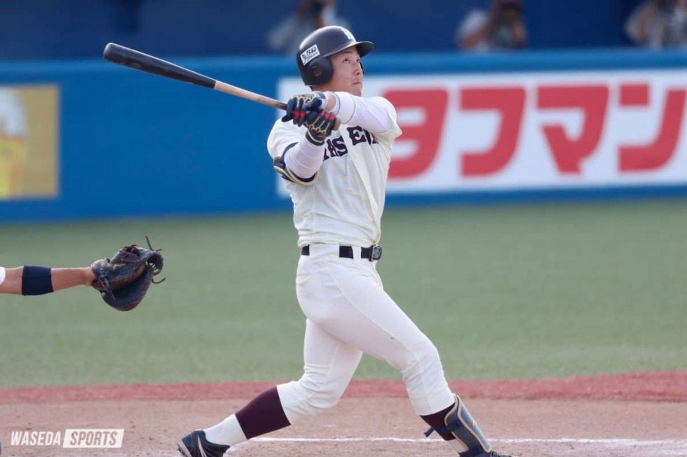 そんな中試合が動いたのは3回。1死一塁となったところで、前の試合までリーグトップの打率5割6分3厘と絶好調の宗山塁(2年)に4球目を捉えられる。打球はそのまま右翼席へ運ばれ、早大は2点を先制された。反撃といきたい早大は3回にも2死一、二塁でチャンスを作るが、5番.000が投ゴロに倒れた。しかし、4回に先頭の.000が 2球目を高く打ち上げると、そのまま突き刺さるように右翼席へ入った。吉納のリーグ戦初本塁打となる一撃で1点を返す。