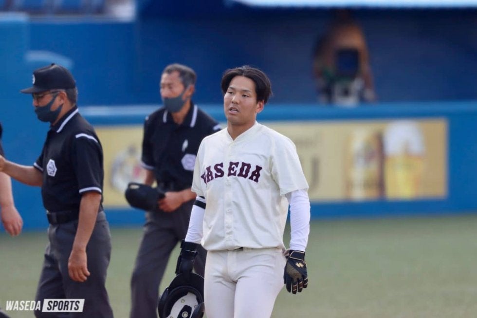 5回からは.000が齋藤正よりマウンドを引き継ぐ。伊藤樹は5回と6回を危なげなく抑えたが、7回に2死二塁とされたところに8番日置への3球目を痛打される。打球は右中間を切り裂く三塁打となり、早大は3点目を失う。だがその裏、5回から登板していた村田から1死一、三塁と長打で同点のチャンスを作る。3番.000は犠飛を放ち1点を返すことはできたが、4番.000は三邪飛に倒れ、逆転には至らなかった。