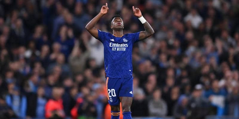 ヴィニシウスは敵地で26日に行われたCL準決勝1stレグのマンチェスター・シティ戦で先発。試合はいきなり2失点を喫する厳しい立ち上がりになるも、FWカリム・ベンゼマが1点を返してハーフタイムへ。後半も先に失点を許したものの、55分にヴィニシウスが圧巻の個人技からゴールを奪取。その後は互いに1点を取り合う展開となり、3-4で敗れた。