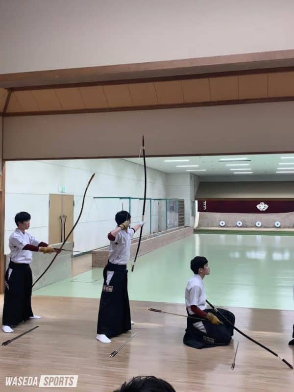 伝統の明治大学定期戦が2019年以来の対面形式での開催を迎えた。この定期戦では3つの異なる形式で対戦し、先に2勝を挙げた方が勝者となる。早大は1戦目の源平戦で宮﨑滉巳(社2=埼玉・県浦和)が20射皆中の活躍を見せるなど奮闘したが、わずか2中差で敗北。続く紅白戦では敗北による選手交代が続き、明大の流れを止めきれず負けとなった。3戦目まで進めず敗北が決定したものの、大きな大会が近づく中、課題と手ごたえをしっかりつかんだ定期戦となった。
