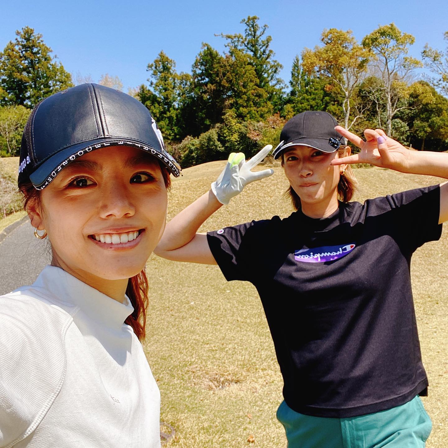 元バレーボール選手の狩野舞子さんが28日、自身のインスタグラムを更新。友人の坪井保菜美さんとゴルフコースを回ったときの写真を投稿した。