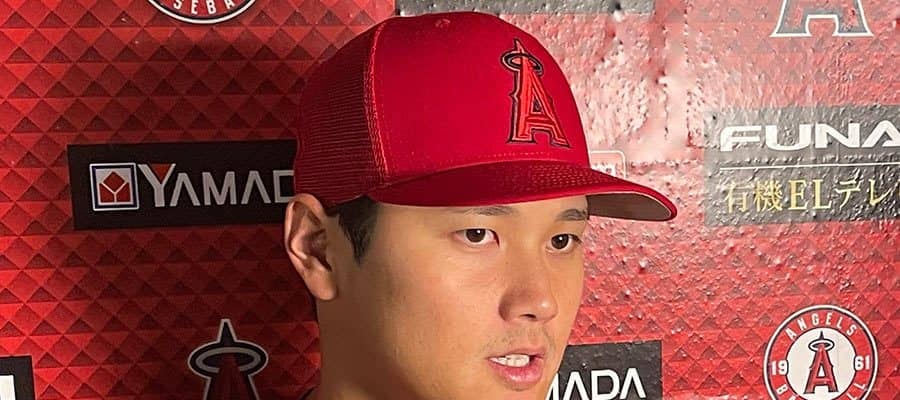 試合後の取材に応じたエンゼルス・大谷翔平【写真:小谷真弥】