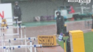 強い風が吹き荒れ、午前中は叩きつけるような強い雨が降る中競技が行われた織田幹雄記念国際大会。早大からはグランプリ男子1…