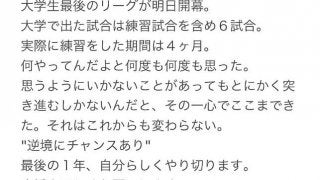 平瀬選手のTwitterより 「大学で出た試合は練習試合を含め6試合。実際に練習をした期間は4ヶ月」。そう平瀬大(スポ4…