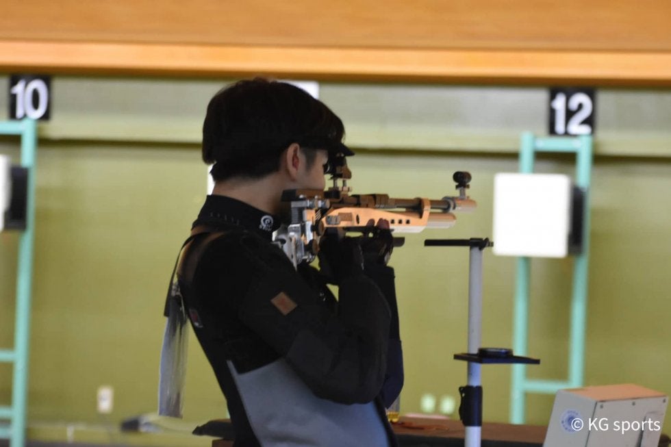 大雨の中、銃音だけが鳴り響く射撃場。きょうは新体制として初の公式戦であり、多くの2年生の初舞台でもあった。最初に行われた10メートルエアライフル男女立射60発競技では、甲斐(法4)、久保(文4)、内藤(文4)が参加した。接戦の中、飛び抜けた点を記録することはできなかったものの、それぞれ536.4点、558.6点、561.6点を記録し、関西の強豪相手に健闘した。また、10メートルビームピストルデジタル男女立射60発競技では、加納(文2)が、序盤から好ペースを保ち合計504点で今種目2位に。2年生ながらも奮闘した。さらに、50メートルライフル男女三姿勢120発競技では、チームをけん引する河越(社4)が意地を見せた。互いに一歩も譲らない展開で、出だしから競い合いが続いた。河越はそのような状況でも焦らず、ゲームを進め、合計11回中心を撃ち抜くという好成績を収めた。結果は、556点で今種目3位。大会初日にチームを勢いづける活躍を見せた。