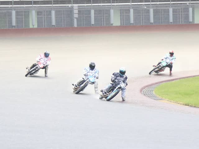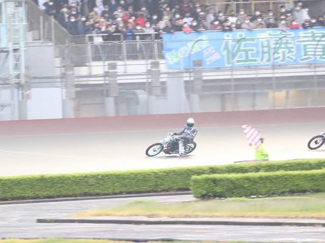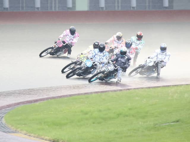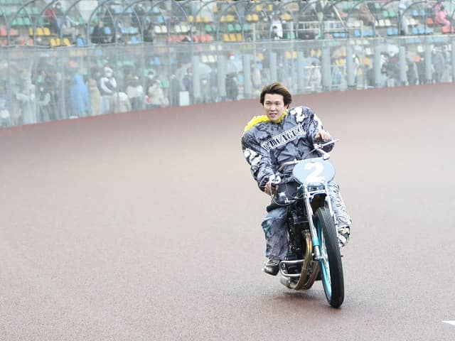 強い雨が降りしきる中での優勝戦。スタートで鈴木が抜群の飛び出しで先制。2番手で追う丹村を振り切って、10周回を逃げ切りオールスター連覇、SG通算11回目の優勝を成し遂げた。