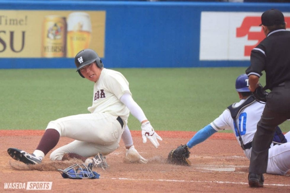 厳しい戦いだった。前日の東大1回戦で引き分け、勝ち点獲得に向けて負けられない早大。しかし、先発.000が東大打線に捕まる。打線もつながりを欠き、序盤からリードを許す苦しい展開に。それでも1点ビハインドの最終回、2死から1点をもぎ取り、なんとか引き分けに持ち込んだ。