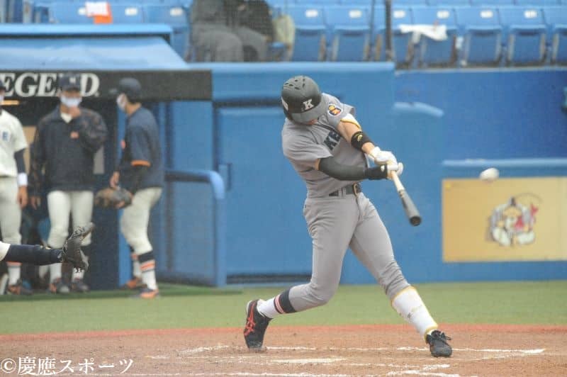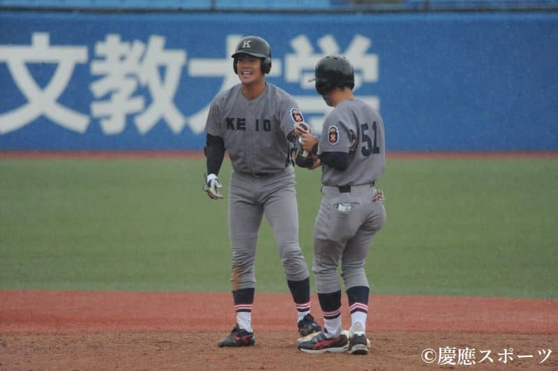 慶大本塁打:萩尾1号ソロ(1回)、萩尾2号ソロ(9回)