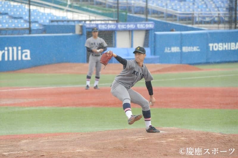 昨日の第1戦、法大エースの篠木健太郎(営2・木更津総合)から4点を先制するも、その後同点に追いつかれ、最終回にサヨナラ負けを喫した慶大。大雨が降る神宮球場で、3季連続優勝に向けて負けられない一戦に臨んだ。