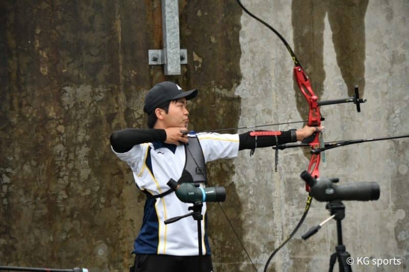 <写真・行射をする松田主将>5月1日、関西学院大学上ヶ原レンジにて第62回関西学生アーチェリーリーグ戦第5戦が行われ、関…