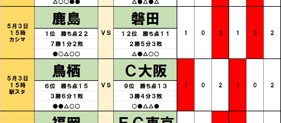 5月3・4日「J試合勝敗予想」鹿島アントラーズ対ジュビロ磐田ほか「ドローを予想したい」3カード!FC東京のゲームには「波乱の気配」