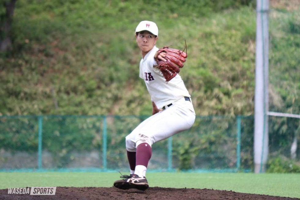 早大の先発は3月の関東地区大学選手権以来のマウンドとなる新井健太主将(商4=東京・早大学院)。新井主将は初回、1死から二塁打を浴びピンチを招く。すると、続く打者の本塁打性の打球を中堅手・渡辺真之介(社3=早稲田佐賀)が好捕するも、相手走者の好判断で中継プレーの隙を突かれ、二塁から生還を許した。その後、新井主将は3回にソロを被弾するも、テンポの良い投球で強力・法大打線の攻撃をかわし、打線の反撃を待った。