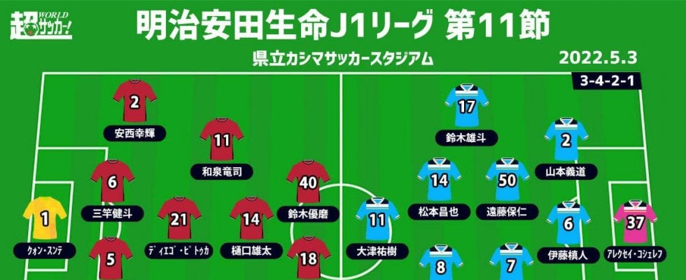 【J1注目プレビュー|第11節:鹿島vs磐田】平常心で首位キープを、磐田は強度に耐えて連勝なるか | サッカー