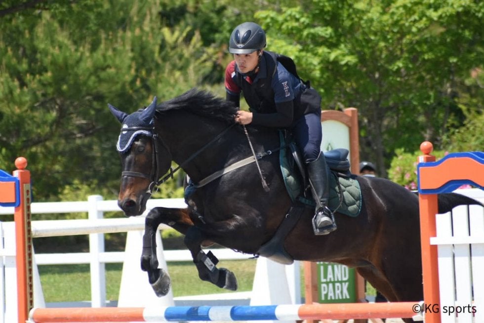 <写真・障害飛越競技に出場した佐々木> 5月3日、兵庫県三木ホースランドパークにて第57回全関西学生馬術大会、第53回関…