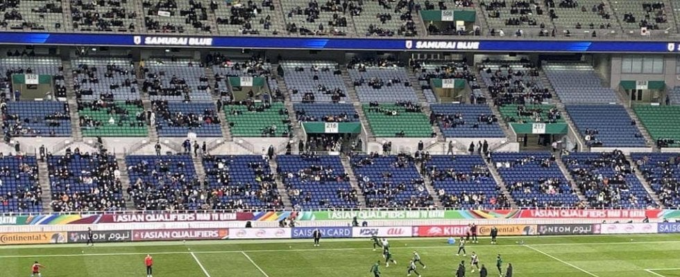 04 サウジアラビアは試合前のピッチにきれいな白線を描いた。(c)Y.Osumi