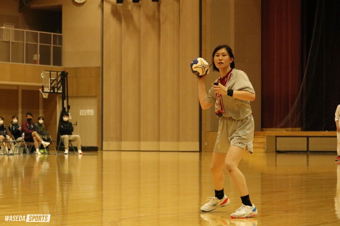 関東学生春季リーグ(春季リーグ)6戦目。ここまで一勝と、なかなか勝ち星を挙げられていない早大は、ここ最近負けなしの日女体大と対戦。互いに粘り強い守りが目立ち、早大はシュートチャンスは多かったものの、決めきれず。一進一退の攻防となり、9-9の同点で前半を折り返す。後半も交互に点を取り合い、拮抗した展開となった。しかし、後半の終盤に3連続得点を許し、点差が開いてしまう。2点を取り返したものの、わずか1点差でタイムアップ。苦しい敗戦となった。