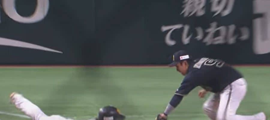今宮はオーバーランも左手で三塁ベースに触れセーフになった■ソフトバンク 2ー1 オリックス(4日・PayPayドーム) …