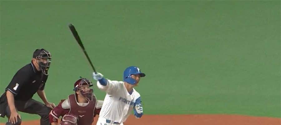 【実際の映像】“右手一本”で運んだ! ハム清宮の1か月ぶり3号は豪快アーチ