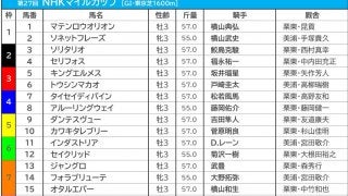 第27回NHKマイルC(GI、芝1600m)の枠順が6日、JRAより発表された。…