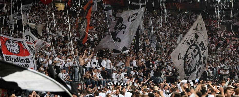 歓喜のフランクフルトサポーターがピッチへと押し寄せた。 5日、ヨーロッパリーグ(EL)準決勝2ndレグのフランクフルトv…
