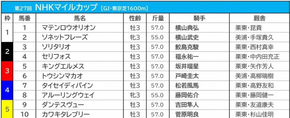 【特集】NHKマイルC2022 枠順、過去10年データ傾向、予想コラム一覧