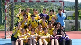 <写真・写真撮影に応じる選手たち> 5月8日、大阪体育大学にて2022年度関西学生ハンドボール春季リーグ第5戦が行…