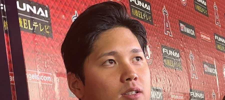 試合後に取材に応じたエンゼルス・大谷翔平【写真:盆子原浩二】
