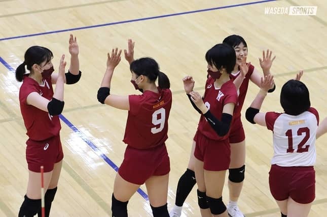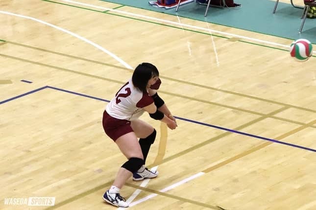 春季関東大学リーグ戦、総当たりの最後の相手は江戸川大。第2セットは序盤のミスが響いて大差でセットを奪われた。しかし、拮抗(きっこう)した展開となった第3セットを僅差でものにすると、これが勝負の分かれ目となった。勢いに乗った早大は、セットカウント3-1(25-19、16-25、25-23、25-13)で勝利を収め、2部全勝優勝で入れ替え戦への切符をつかんだ。