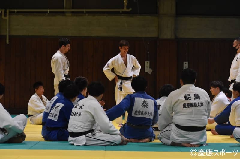 また、雰囲気の良さを感じさせる印象的なシーンがあった。この日から、慶大柔道部の練習にはフランスからの留学生が2名参加していた。練習終了後のミーティング。留学生2人の紹介が行われた際、部員たちは盛大な拍手や歓声で彼らを迎えていた。