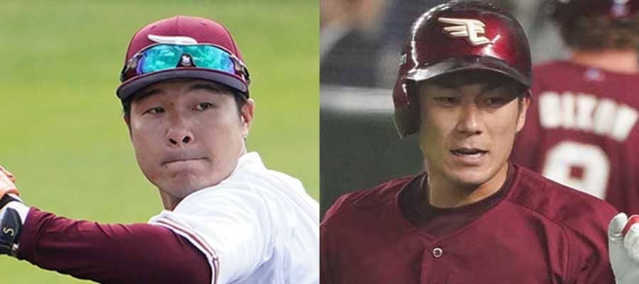 楽天・茂木栄五郎(左)と岡島豪郎【写真:荒川祐史】