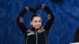 11日、北京五輪・フィギュアスケート女子シングル・4位となったロシア・オリンピック委員会(ROC)のカミラ・ワリエワが自…