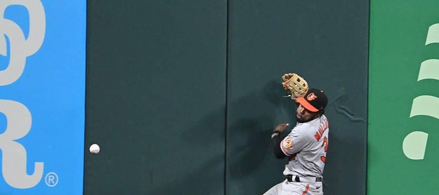 打球を追うオリオールズのセドリック・マリンズ【写真:Getty Images】