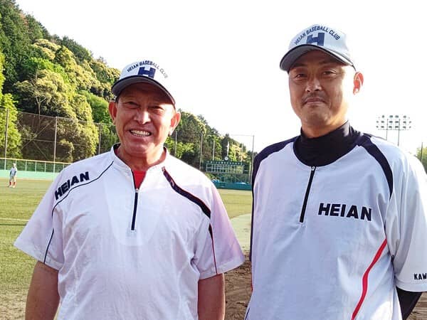 今春から母校のコーチに就任した川口知哉(写真右)と原田英彦監督