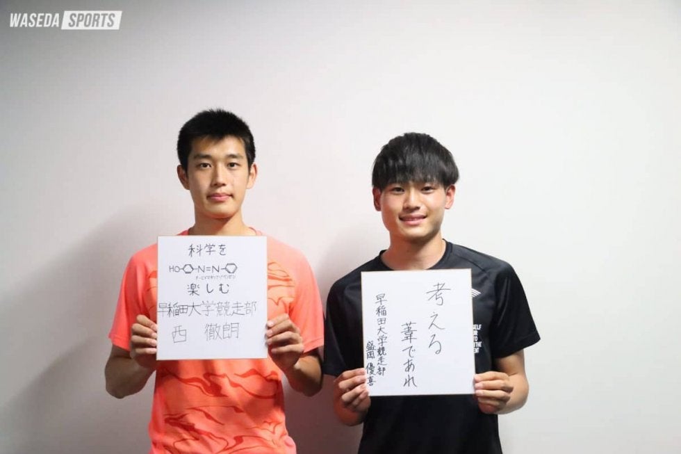 今回の対談は障害ブロックに新しく入った2人。110メートル障害(トッパー)を専門とし、昨年のインターハイ優勝、日本陸上競技連盟の次世代アスリート強化育成プログラム「ダイヤモンドアスリート」認定選手にも選ばれている西徹朗(スポ1=愛知・名古屋)と、400メートル障害(ヨンパー)でインターハイ4位、51秒台の自己記録を持つ盛岡優喜(スポ1=千葉・八千代松陰)。2人はどのような思いで入学し、これからどういった結果を目指すのか。それぞれの信念に迫る。