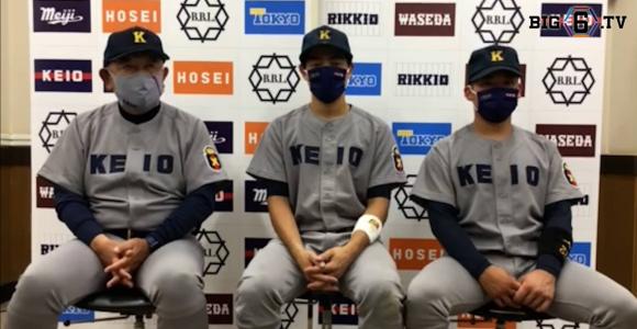 【ヒーローインタビュー】慶應義塾大学 堀井哲也監督・朝日晴人(④彦根東)・善波力(③慶應) | 東京六大学野球