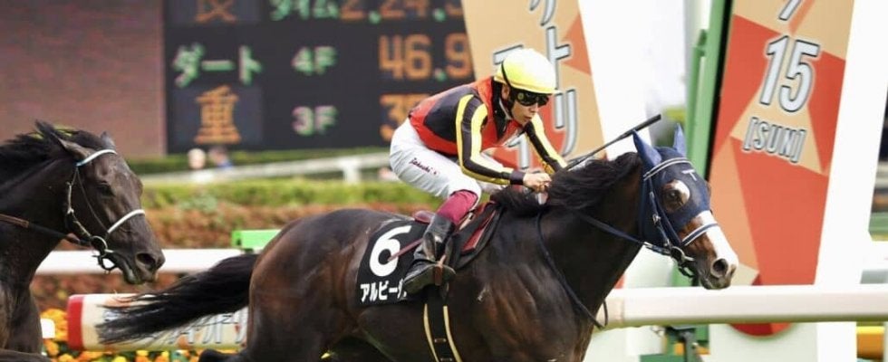 14日、東京競馬場で行われた10R・緑風ステークス(4歳上3勝クラス・芝2400m)で3番人気、横山武史騎乗、アルビー…
