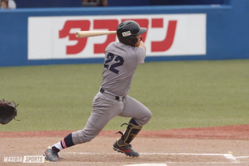 先発・増居を援護したい慶大打線は、試合序盤から明大先発・蒔田稔(3年)を攻め立てる。初回に2者連続四球で1死一、二塁の好機を迎えると、4番・萩尾が中堅手の頭上を越える適時三塁打を放つ。すると続く朝日晴人(4年)にも適時打が飛び出し、3点を先制した。その後も3回に1死一、二塁から善波力(3年)の適時中前打、さらに5回にも2死三塁で再び善波に適時打が飛び出し、追加点を挙げた。