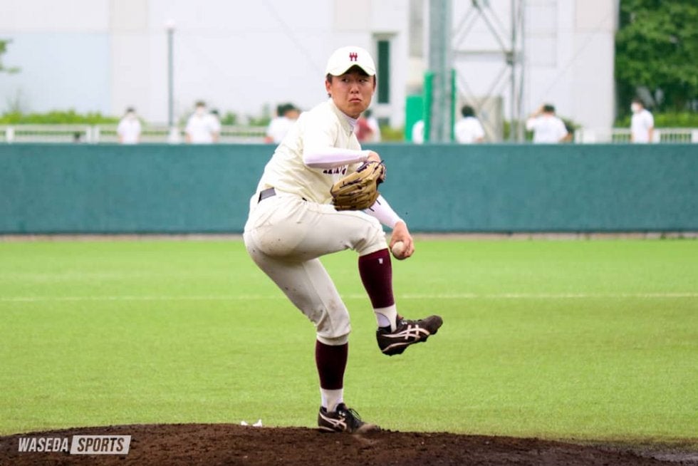 早大の先発は、ここまで投手陣の柱としてチームを支えている大沢龍登(文構2=埼玉・星野)。この日も大事なカード初戦を任された大沢は、3回に適時打で1点を失うも、打たせて取る投球で試合のリズムを作る。6回には守備の乱れをきっかけにしてピンチを招く場面もあったが、後続の打者をしっかりと打ち取り、ピンチを脱した。大沢はこの日、6回を投げて被安打2、1失点と好投。自らの役割をしっかりと果たしてマウンドを降りた。