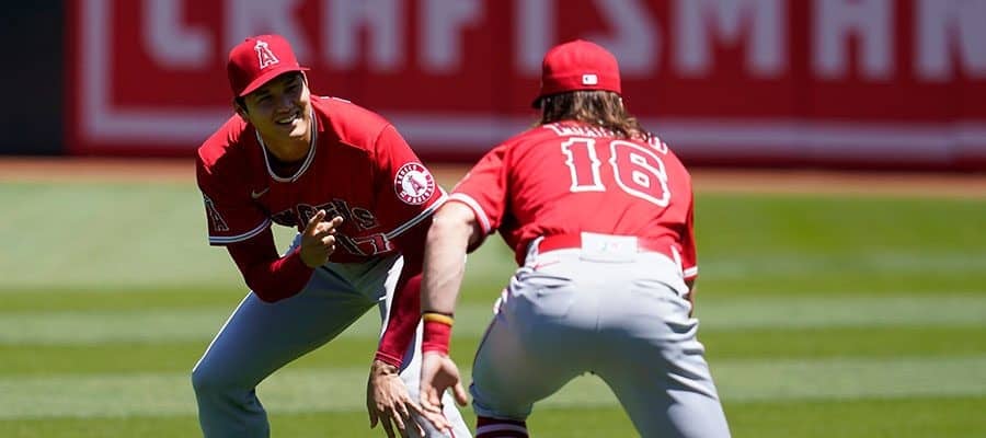 アスレチックス戦前、マーシュと笑顔でグーやチョキのポーズ エンゼルスの大谷翔平投手が試合前に見せた“リラックスムード”に…