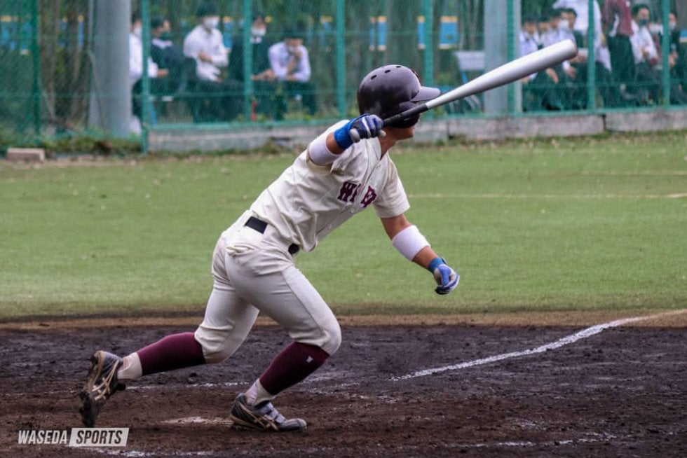 早大は大量リードを奪った後も攻撃の手を緩めない。3回には久保嶋真也(社2=神奈川・桐蔭学園)が2点適時二塁打を放ち追加点を挙げると、5回には川原崚(商4=東京・早実)の適時打、岡田、久保嶋の連続適時二塁打で追加点を挙げる。さらに、この回には代打・春名が東京六大学リーグ戦初安打となる右越2ランを放ち、さらに点差を広げた。続く6回には先頭の川原が左翼手の前に落ちる安打を放つと、相手左翼手が打球を後ろにそらす間に三塁を陥れる(記録は三塁打)。この好機に、6番久保嶋が適時打を放つと、代打・阿部剛士(社2=神奈川・川和)が犠飛を放ち追加点を挙げた。