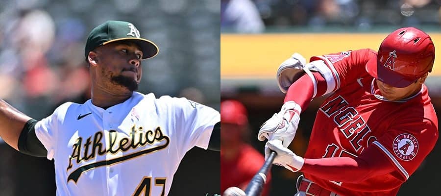 アスレチックスのフランキー・モンタス(左)とエンゼルス・大谷翔平【写真:ロイター】