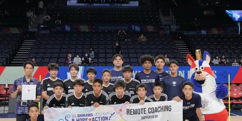 沖縄本島北部から数キロのところに伊江島という人口4千人の離島がある。伊江中学校はこの島唯一の中学校だが、同校バスケットボール部の生徒たちは昨秋からテクノロジーを駆使し遠隔で指導を受ける“リモートコーチング”に取り組み、その成果を5月7日の琉球ゴールデンキングス対広島ドラゴンフライズ戦の前に沖縄アリーナ(沖縄市)のコートで披露した。