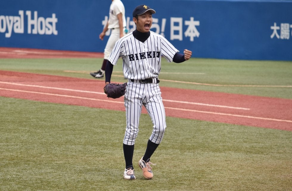 6回、2死一塁から熊谷敬宥内野手(4年・仙台育英)のタイムリー二塁打で2点目を奪うと、続く田中誠也投手(2年・大阪桐蔭)もタイムリーで続き、早大先発・小島和哉投手(3年・浦和学院)をマウンドから降ろす。それでも立大の勢いは止まらず、寺山寛人外野手(3年・神戸国際大附)、高取克宏外野手(4年・日大二)にも連続タイムリーが生まれて一挙4点を追加した。その裏に2点を返されたが、7回にはスクイズで6点目とダメ押し。