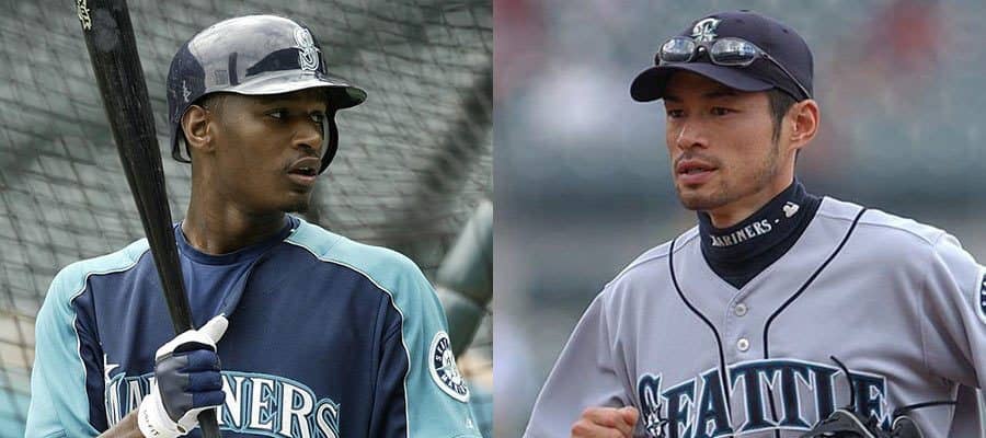 2006、07年にともにマリナーズでプレーしたアダム・ジョーンズ氏(左)とイチロー氏【写真:Getty Images】