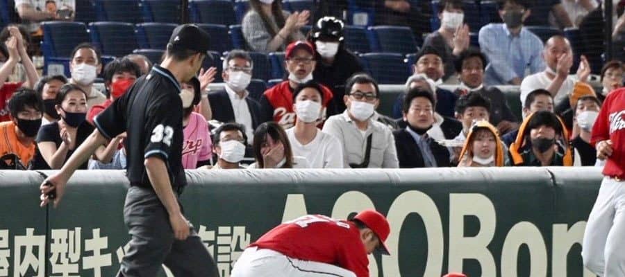 三塁ファウルゾーンのフェンス際で起きた「ジャンピング海老反り」■巨人 2ー1 広島(19日・東京ドーム) 広島2年目の矢…