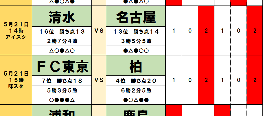 5月21・22日「J試合勝敗予想」浦和レッズは「埼スタの力」で鹿島アントラーズ相手にドロー街道脱出を狙う!柏レイソルも得意の「味スタ戦」