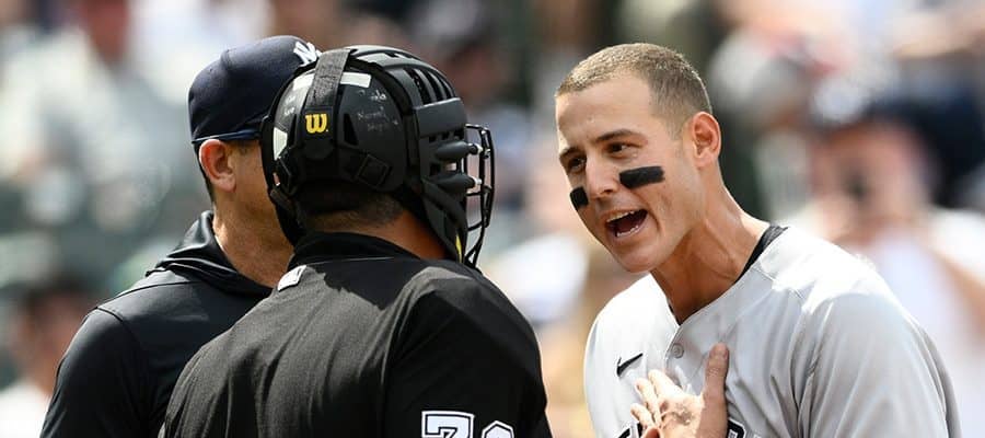 この試合、8回先頭で打席に入ったヤンキースのアンソニー・リゾへの最初の2球は、低めに外れているように見えるがいずれもストライクの判定。ただ1死後、ジャンカルロ・スタントンへの初球はリゾの2球とほぼ同じコースとなったが、これはゾーンを外れているとしてボール判定。これにベンチから飛び出し猛抗議したリゾが、退場処分を受けた。